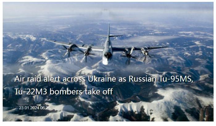中新網1月23日電 據烏通社23日報道,烏克蘭全境拉響防空警報。報道稱,烏克蘭空軍記錄到當地時間23日早些時候,多架圖-95轟炸機和圖-22轟炸機從俄羅斯起飛。