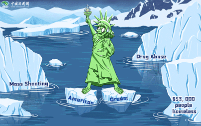 種種社會問題加劇社會悲觀情緒蔓延,社會治理失調(diào)凸顯“美國夢”行不再光鮮的事實。據(jù)美國廣播公司(ABC News)本月中旬報道,該公司聯(lián)合益普索開展了一項關(guān)于“美國夢”的民調(diào)。與2010年首次開展此項民調(diào)時,50%的受訪民眾相信“美國夢”存在的事實相比,最新民調(diào)中,僅有27%的人認為“美國夢”依然存在。“噩夢”還是“幻夢”?以激勵個人獲得成功的“美國夢”恐將為社會困局的毒藤所纏繞,“自由女神火炬”指引下的美國夢成為一個個“美國噩夢”。(彭大偉 孟湘君 谷麗萍 陳善坤 薛凌橋)