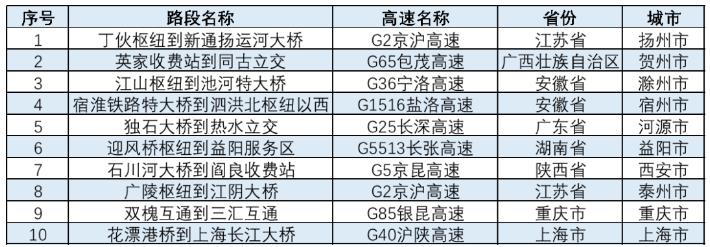表 春節(jié)較繁忙服務(wù)區(qū) (全文圖表均來自交通運(yùn)輸部路網(wǎng)監(jiān)測與應(yīng)急處置中心官方微博)