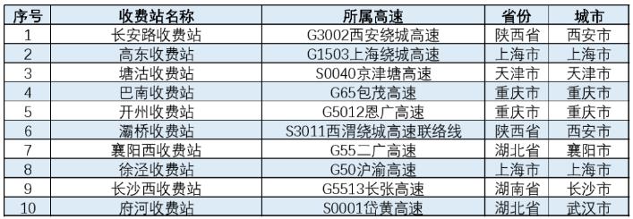 表 春節(jié)易擁堵緩行收費(fèi)站
