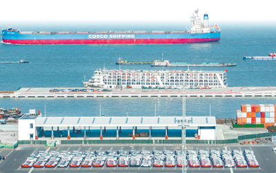 新年伊始,上海外高橋海通國(guó)際汽車碼頭一派繁忙景象,“上汽安吉申誠(chéng)”號(hào)汽車滾裝船首航前往歐洲,船上一共搭載近5000輛中國(guó)自主品牌新車,其中約一半是新能源汽車;