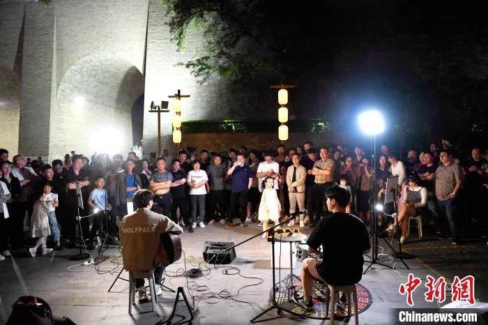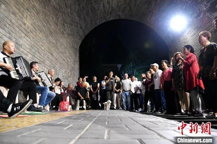 圖為民眾在永寧門下歌唱。 張遠(yuǎn) 攝