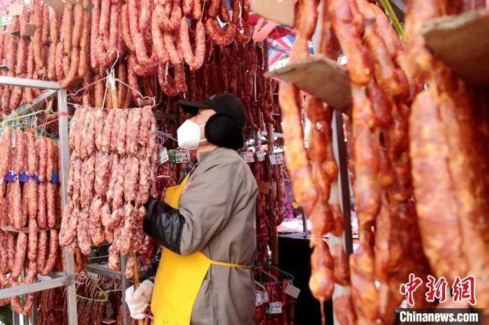 圖為西安冬日街頭臘腸飄香。 張遠(yuǎn) 攝