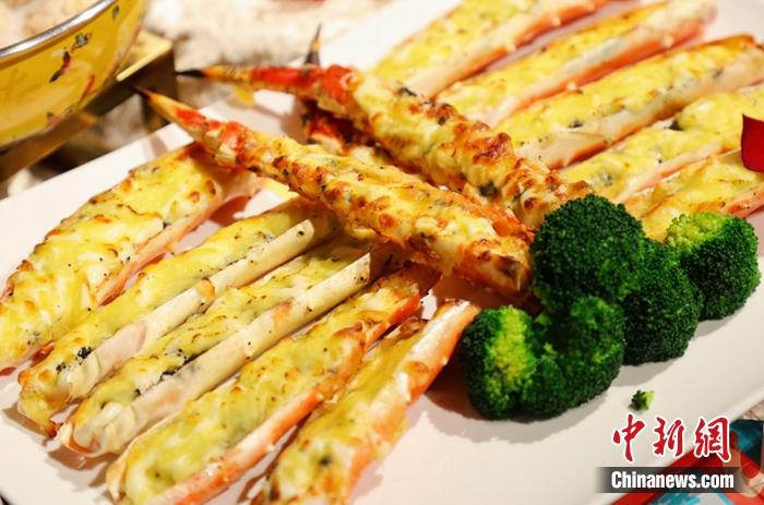 圖為預制菜簡單加工后的成品黑松露芝士帝王蟹腿。供圖
