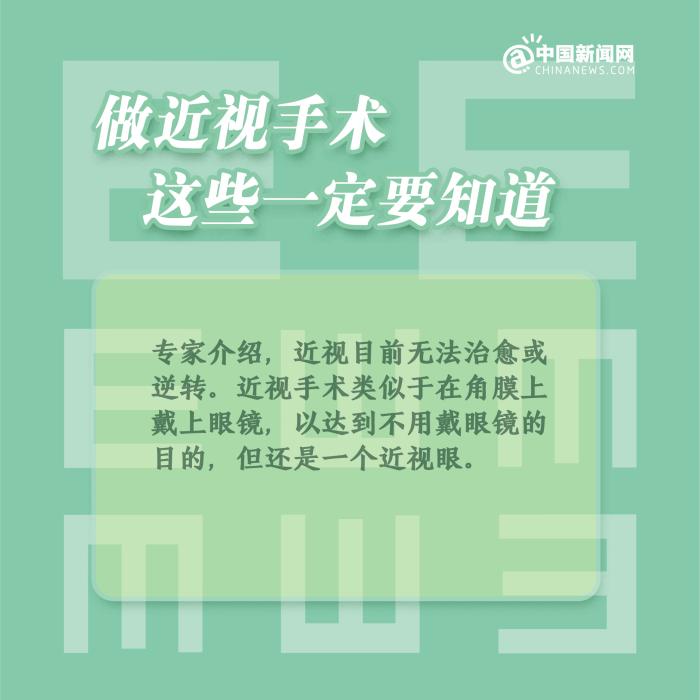 中新網(wǎng)2月4日電 ①近視手術(shù),分為角膜激光手術(shù)和眼內(nèi)鏡植入手術(shù);②一般來說,近視手術(shù)的時(shí)間建議在18-50歲之間;③術(shù)后1個(gè)月內(nèi),避免異物進(jìn)入眼睛,不要揉眼和劇烈運(yùn)動(dòng);④術(shù)后仍應(yīng)注意用眼衛(wèi)生、飲食習(xí)慣、生活習(xí)慣等,要經(jīng)常放眼遠(yuǎn)眺。