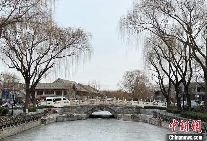 2023年2月22日,眺望位于北京市西城區(qū)的“北京中軸線第一橋”——萬(wàn)寧橋。萬(wàn)寧橋始建于元代,為單孔石拱橋,橫跨在什剎海前海東岸的玉河上,西鄰什剎海前海,是《北京中軸線保護(hù)管理規(guī)劃(2022年—2035年)》確定的遺產(chǎn)區(qū)要素之一。中新社記者侯宇攝