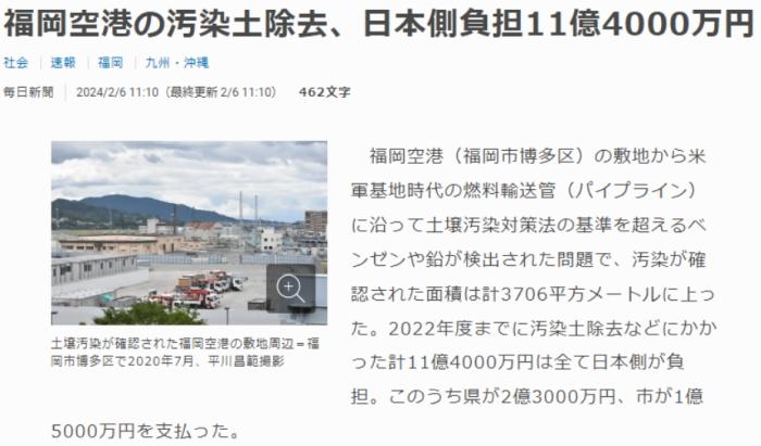據(jù)報(bào)道,福岡機(jī)場(chǎng)所在地曾為美軍基地,1972年返還給日方,污染區(qū)域基本都是當(dāng)年美軍基地的燃料輸送管沿線。