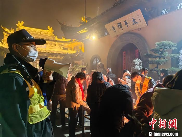 “太平禪寺零點(diǎn)前后達(dá)到瞬時(shí)人流高峰,人流量接近往年峰值人數(shù)的兩倍?!鄙虾J泄簿謱毶椒志诸櫞迮沙鏊L何相俊說。位于上海市寶山區(qū)太平禪寺的龍年撞鐘、燒頭香等活動(dòng),吸引了大量市民前來進(jìn)香。為應(yīng)對2月9日晚至2月10日凌晨的短時(shí)大客流,顧村派出所在寺廟入口處增設(shè)了蛇形緩沖通道,預(yù)計(jì)可同時(shí)容納500人以上有序排隊(duì)入寺。