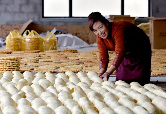 圖為藏族阿佳在打包“卡塞” 中新社記者 貢嘎來(lái)松攝