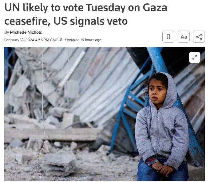 中新網(wǎng)2月19日電 綜合報(bào)道,外交人士表示,聯(lián)合國安理會或?qū)⒃诋?dāng)?shù)貢r(shí)間20日就阿爾及利亞提出的加沙人道?;饹Q議進(jìn)行投票,但美國暗示將在該投票中實(shí)施一票否決。