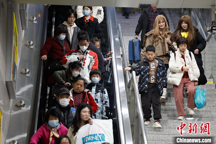 2月17日,旅客抵達(dá)上海虹橋站。 中新社記者 殷立勤 攝
