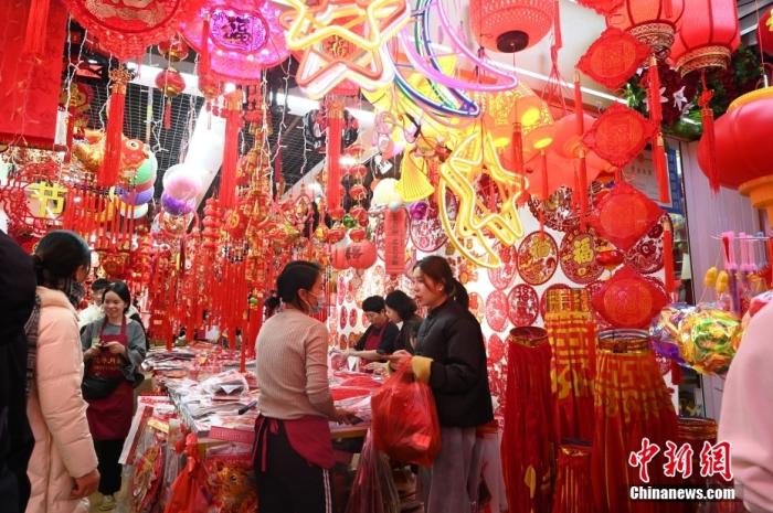 圖為民眾選購(gòu)過年飾品。 中新社記者 劉文華 攝