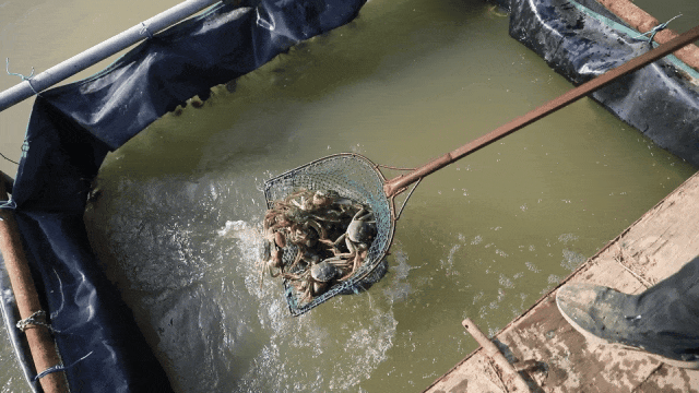 每年3月放苗,9月中下旬進(jìn)入大閘蟹捕撈旺季,將大閘蟹銷往全國(guó)多地。每年12月底,大閘蟹全部清塘。次年1月至3月,進(jìn)行塘底清淤、消毒。3月開始放水、放苗,開始新一輪的養(yǎng)殖工作。