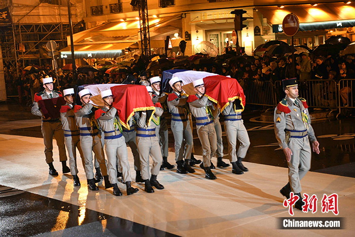 法國官方當晚舉行了莊嚴的靈柩遷葬儀式。記者在現(xiàn)場看到,盡管天氣惡劣,風雨交加,仍有眾多民眾冒雨守候在通往先賢祠的道路兩旁觀看儀式。馬努尚夫婦和抵抗納粹小組成員的照片被投射到先賢祠的正門上。