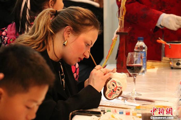 表演結(jié)束后,主辦方還準(zhǔn)備了迷你廟會(huì)體驗(yàn)活動(dòng),畫臉譜、吹糖人等傳統(tǒng)民俗活動(dòng)吸引了眾多法國(guó)青少年圍觀?!拔覑壑袊?guó)!”他們表示,雖然來到中國(guó)的時(shí)間尚短,但已經(jīng)感受到中國(guó)文化的魅力。