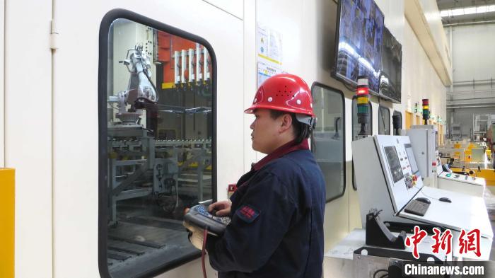 來金(天津)汽車零部件有限公司員工在全自動化沖壓車間操作生產。陳建 攝