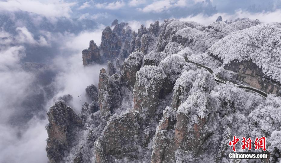 湖南張家界:云漫峰巒 冰雪添韻。吳勇兵 攝
