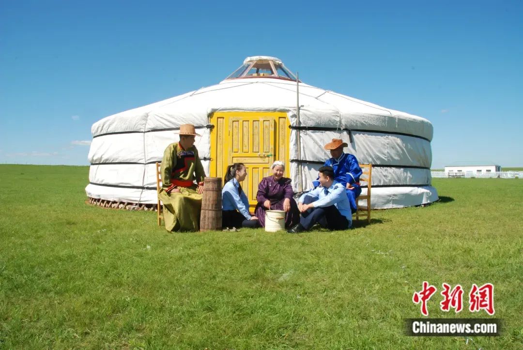 夏天,牧民在蒙古包外制作傳統(tǒng)酸奶。 鄂溫克族自治旗宣傳部供圖