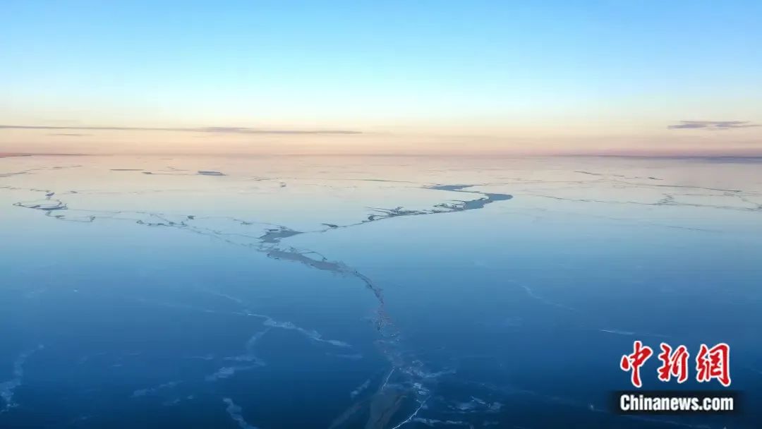 千里冰封的呼倫湖一眼望不到邊。 田昊霖 攝
