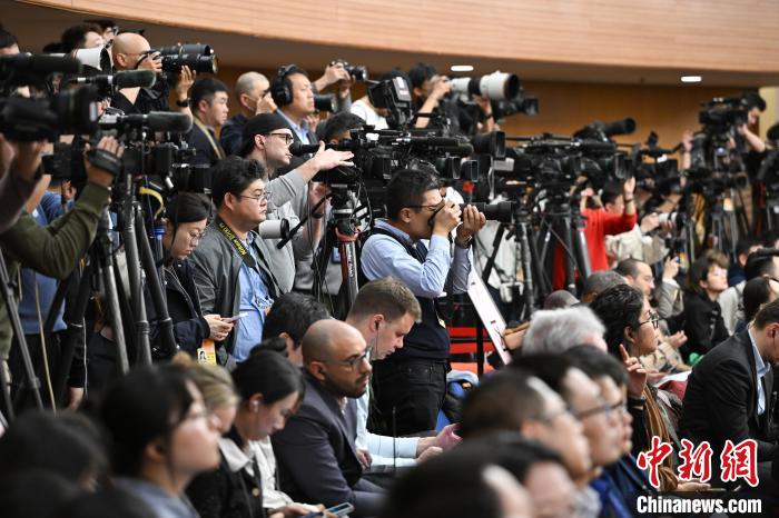 3月6日,十四屆全國(guó)人大二次會(huì)議在北京舉行記者會(huì),國(guó)家發(fā)展和改革委員會(huì)主任鄭柵潔、財(cái)政部部長(zhǎng)藍(lán)佛安、商務(wù)部部長(zhǎng)王文濤、中國(guó)人民銀行行長(zhǎng)潘功勝、中國(guó)證券監(jiān)督管理委員會(huì)主席吳清就發(fā)展改革、財(cái)政預(yù)算、商務(wù)、金融證券等相關(guān)問題回答中外記者提問。圖為中外記者在現(xiàn)場(chǎng)采訪。 中新社記者 何蓬磊 攝