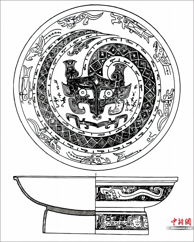 商代晚期青銅器獸面紋線(xiàn)圖。受訪(fǎng)者供圖