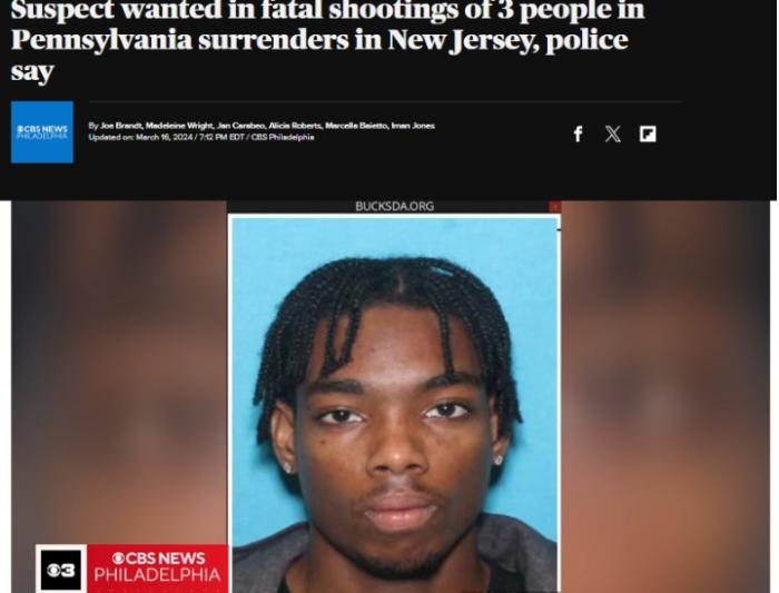 據(jù)報(bào)道,這名26歲的嫌疑人在兩處不同的住宅中殺害了3人,隨后劫持了一名司機(jī)前往新澤西州,最終在新澤西州一處住宅附近被逮捕。報(bào)道稱,這起槍擊事件的受害人包括嫌疑人的繼母和他13歲的妹妹。