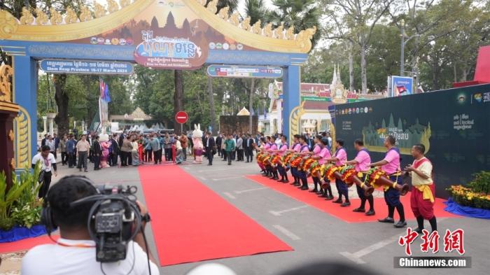 中新社暹粒3月16日電 (楊強(qiáng) 黎海月)當(dāng)?shù)貢r(shí)間3月16日,柬埔寨第八屆河水節(jié)開幕式在世界文化遺產(chǎn)吳哥窟古跡所在地暹粒省舉行。出席當(dāng)天活動(dòng)的柬埔寨首相洪瑪奈表示,歡迎更多中國(guó)游客訪問柬埔寨。