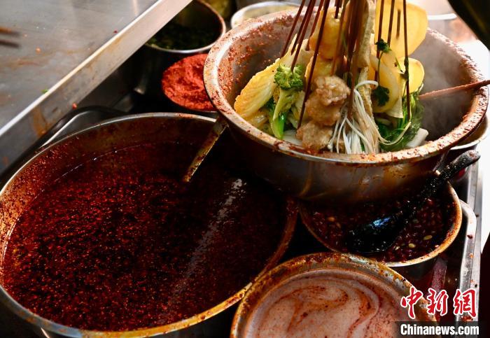 “我們會(huì)一次性熬制可以用20天左右的老料,保存起來(lái),煮湯時(shí)挖取幾勺,加水熬制數(shù)小時(shí),才能烹飪出濃濃的湯底,煮出來(lái)的菜才香?!睏罾^兵說(shuō),每家麻辣燙的紅油辣子也各有“獨(dú)家秘方”,大多用八角、香葉、花椒等香料磨粉調(diào)味,加一些白芝麻,再用炸香的熱油一潑,辣香味隨之襲來(lái)。