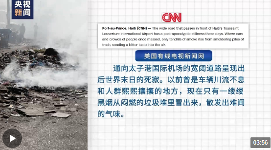 “通向太子港國際機(jī)場的寬闊道路呈現(xiàn)出后世界末日的死寂。以前曾是車輛川流不息和人群熙熙攘攘的地方,現(xiàn)在只有一縷縷黑煙從悶燃的垃圾堆里冒出來,散發(fā)出難聞的氣味?!泵绹芯€電視新聞網(wǎng)(CNN)網(wǎng)站18日報道了當(dāng)前海地的混亂局勢。