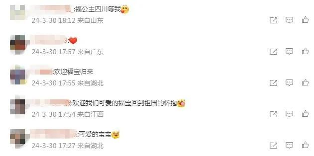 中新網(wǎng)4月3日電(甘甜)“歡迎我們可愛的福寶回到祖國的懷抱!”“福公主四川等我!”“福寶一定要幸福啊……”