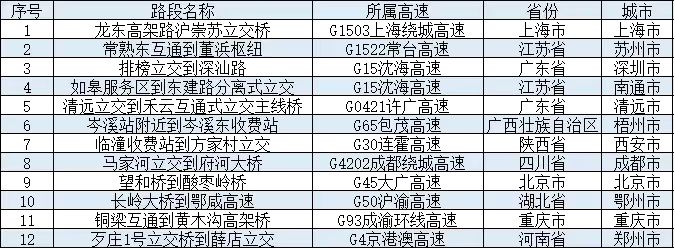 清明節(jié)期間,全國高速公路預計易發(fā)生擁堵緩行的路段,如表1所示。