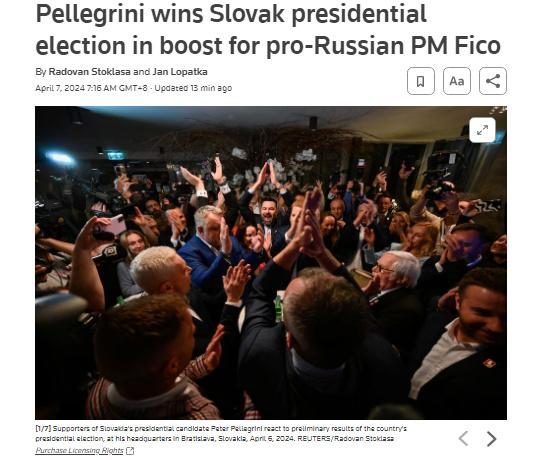 據(jù)報(bào)道,這是斯洛伐克統(tǒng)計(jì)局在統(tǒng)計(jì)了“幾乎所有投票站”的選區(qū)登記冊(cè)后公布的臨時(shí)非官方結(jié)果。佩列格里尼獲得了53.26%的選票,超過了前外交部長伊萬·科爾喬克46.73%的選票。