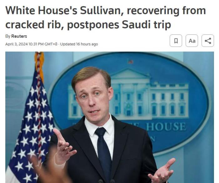 據(jù)報道,白宮國家安全委員會戰(zhàn)略溝通協(xié)調(diào)員柯比表示,傷勢影響了沙利文“旅行的能力”,“這是他自己的一個小事故,不是任何人造成的,也不是惡意行為的結(jié)果。”
