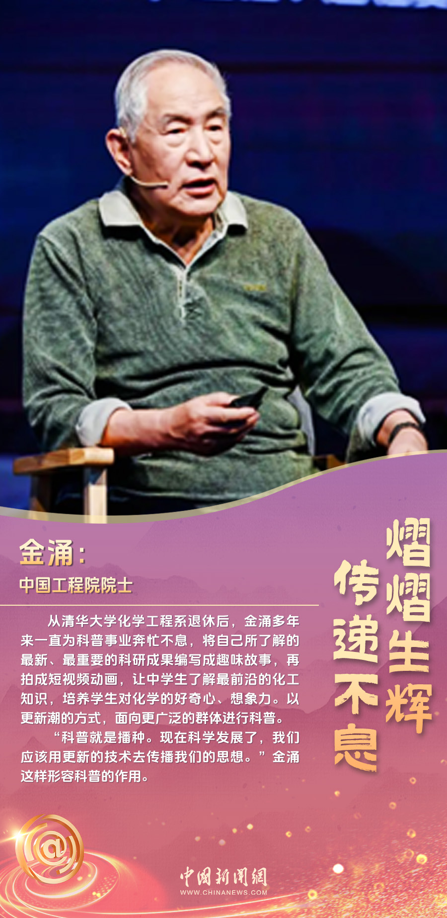 他,用一年時間,冒著嚴寒、頂著酷暑,與居民們深入溝通,解決好社區(qū)的“充電難”問題;她 ,2019年在大學校園中挺身而出,保護同學,2023年成為了一名人民警察;他,從清華大學化學工程系退休后,多年來一直為科普事業(yè)奔忙不息……