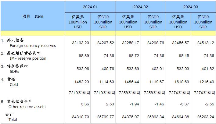 - 3月末中國(guó)外匯儲(chǔ)備32457億美元 環(huán)比升0.62%