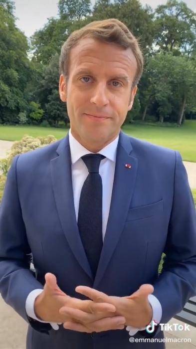說(shuō)到TikTok的“資深用戶”,不得不提法國(guó)總統(tǒng)馬克龍。他的首個(gè)TikTok視頻發(fā)布于2020年7月,之后又發(fā)布了不少回答提問(wèn)的“懟臉自拍”,目前在該平臺(tái)擁有420萬(wàn)粉絲。