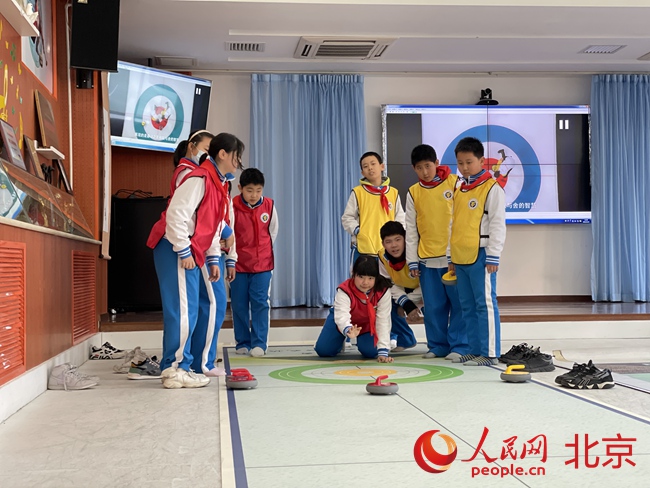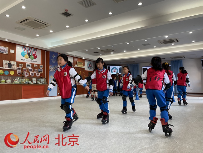海淀首個小學(xué)“冰雪教室”亮相,可進(jìn)行冰壺、短道速滑等項(xiàng)目。人民網(wǎng) 董兆瑞攝