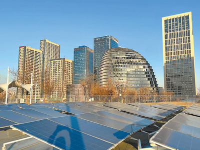 北京冬奧村(冬殘奧村)光伏發(fā)電現(xiàn)場(chǎng)。