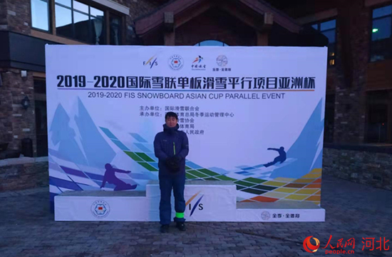 2019-2020國際雪聯(lián)單板滑雪平行項(xiàng)目亞洲杯賽中裁判員楊俊剛。 齊劍鋒攝