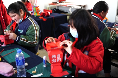 曹村鎮(zhèn)學(xué)校曼妙燈彩課程指導(dǎo)老師李仁秋說:“做一個(gè)虎年主題的燈彩,來迎接中國傳統(tǒng)的春節(jié),也感受下中國傳統(tǒng)的文化?!?/p>