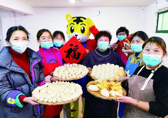 1月19日,在金華婺城區(qū)城西街道河盤橋社區(qū)活動室,部分留金過春節(jié)的外來務(wù)工人員一起做花饃、蒸饅頭、包餃子,提前感受家鄉(xiāng)過年的喜慶氣氛。河南開封籍的于紅霞說,今年她響應政府號召留金過春節(jié),丈夫平時開大貨車,常年奔波在外,非常辛苦,趁著春節(jié)可以在家里好好休息,她準備了一些家鄉(xiāng)特色的菜肴和面食。(時寬兵)