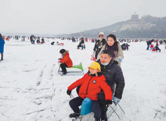 圖為游客在頤和園樂享冰雪運(yùn)動。作為第八屆北京市屬公園冰雪游園會活動內(nèi)容之一的頤和園“圓夢冬奧,相約頤和”項目,今年首次設(shè)置了雪上娛樂項目,讓市民不出京城就可親身感受冰雪魅力。 本報記者 吳鏑攝
