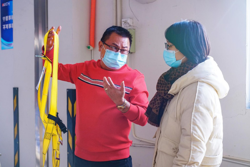 盡管臨近過(guò)年,位于婺城區(qū)臨江工業(yè)園區(qū)的某工具生產(chǎn)車(chē)間內(nèi)依舊一派繁忙?!斑@些安全繩是出口到美國(guó)的,這一批是出口到西班牙的。我們的訂單已經(jīng)排到了5月份,所以工人們都還在堅(jiān)守崗位?!痹摴矩?fù)責(zé)人馮銘說(shuō)。