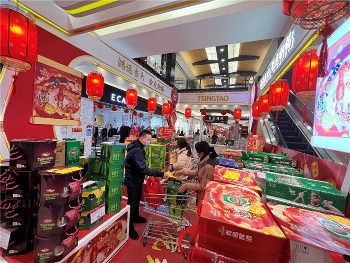 而青島啤酒“百年之旅“憑借獨一無二的珍惜原材、不惜工本的耗時慢釀、與無與倫比的琥珀原色和恒久回味,也在春節(jié)超高端市場上有叫好叫座?!比ツ曜咴L客戶就送的‘百年之旅’,有特色又有排面,客戶反饋特別好,今年特地團購一批,公司年會聚餐也喝他?!澳惩赓Q(mào)公司采購部的劉先生,正在和超市的經(jīng)理談大宗采購,作為青島”特產(chǎn)“的青島啤酒,是他們每年過年的首選禮品,”還有今年推出虎年版的百年鴻運,特別新年應(yīng)景,配上特有的搖擺蓋開起來特別有氣氛,喜慶?!?/p>