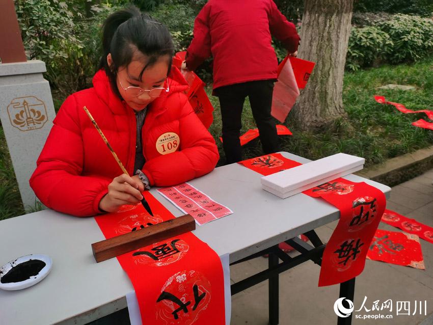 參加寫春聯活動的小選手合影。人民網 劉海天攝