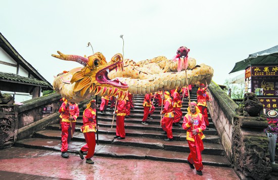豐富多彩的傳統(tǒng)民俗活動同樣也將在邛崍平樂古鎮(zhèn)上演。作為國家非物質(zhì)文化遺產(chǎn)瓷胎竹編的故鄉(xiāng),平樂古鎮(zhèn)的“竹龍迎春”活動是其一大特色。99米長、擁有5000多片鱗片的“亞洲第一竹龍”舞動時張合如金波流動,靈動非常。春節(jié)期間,舞竹龍的隊伍將從平樂古鎮(zhèn)平沙落雁音樂廣場出發(fā),穿過富有川西特色的老街,巡游整座古鎮(zhèn)。