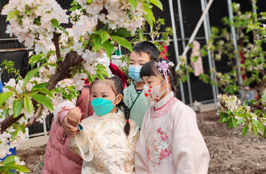 走進(jìn)茶淀街道孟家瞿卩村種植戶于長晶的大棚,仿佛置身于花海之中。大棚外春寒料峭,大棚內(nèi)溫度適宜、花開正艷。櫻桃花盛開的美景吸引了不少游客前來打卡拍照,有的小游客為了拍出好看的照片,還特意穿來漢服來和櫻桃花合影拍照。農(nóng)戶搶抓農(nóng)時(shí),辛勤勞作,確保今年的櫻桃豐產(chǎn)豐收?!皺烟夜芾硇枰饲诳?,不能偷懶?!庇陂L晶一邊忙著給櫻桃樹修剪枝條一邊說道。這幾天,她和家人每天都很忙碌,盡管勞累,但心里卻很高興。于長晶說:“我們今年借助科學(xué)管理,有的大棚里的櫻桃已經(jīng)結(jié)出果實(shí)。大概到3月下旬,大片櫻桃都成熟了,到時(shí)候游客就可以來采摘了。”