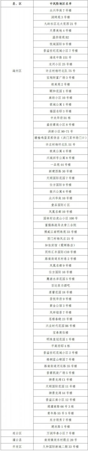 連云港市66個(gè)中風(fēng)險(xiǎn)地區(qū)詳細(xì)名單(2022年3月11日)
