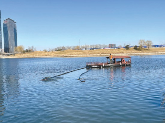 工作人員駕駛智能清理船凈化水面。本報(bào)實(shí)習(xí)記者 張佳琪攝