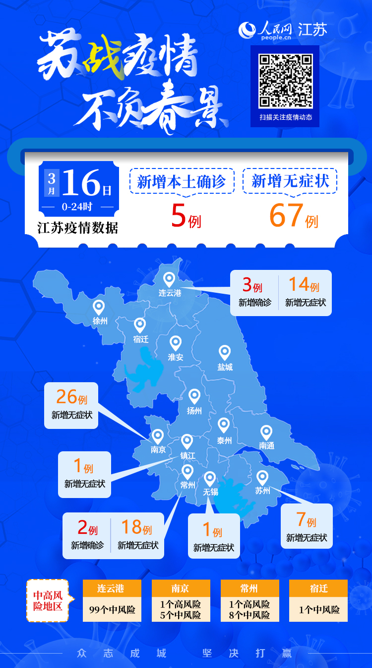 江蘇新增例5本土確診,67例無(wú)癥狀: